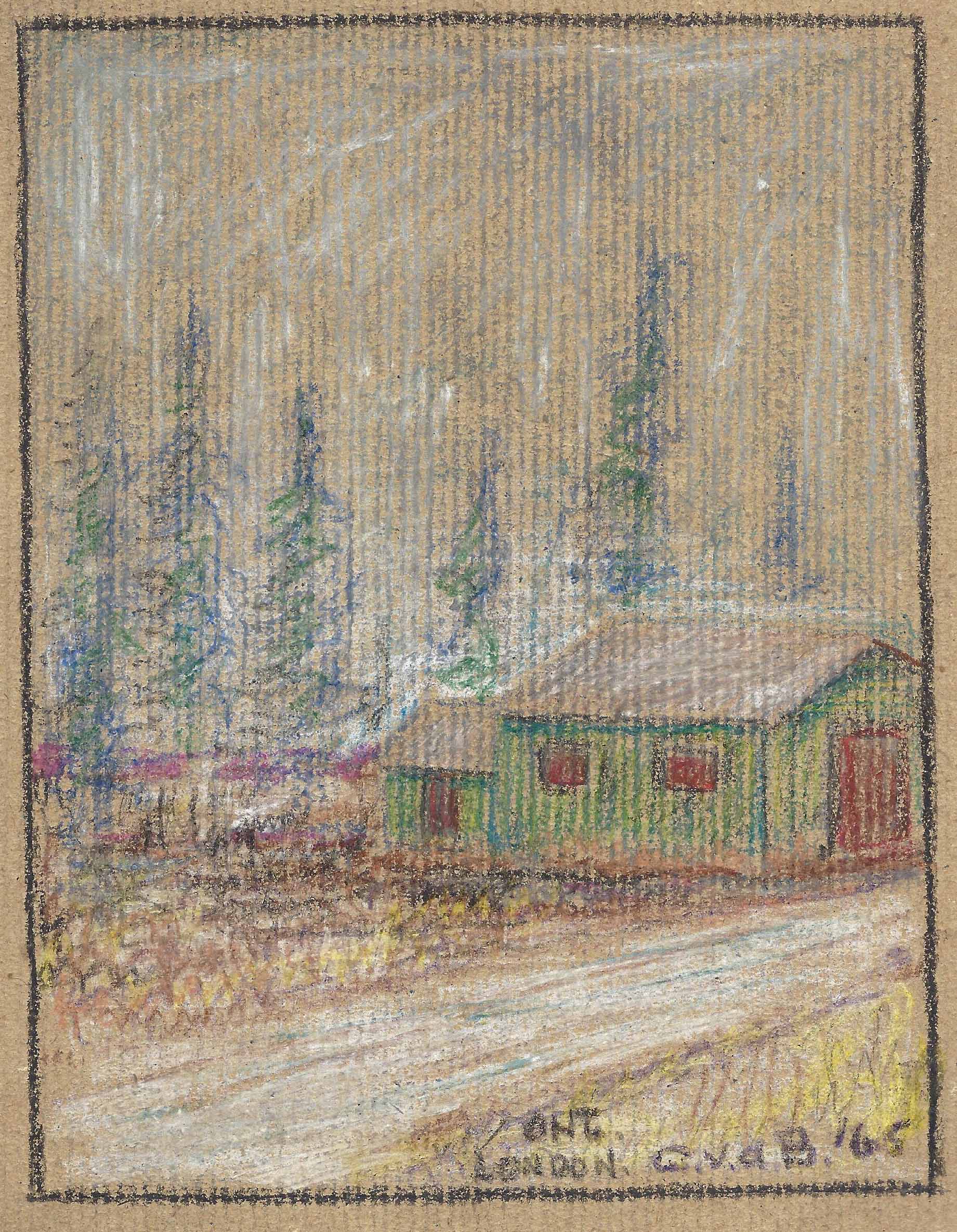 Chicken Coop and Feed Shed London Psychiatric Hospital; Wax crayon on coloured paper, 1965.