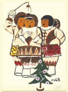 Christmas Card; Water colours on card stock, 1965, 12.7 cm x 17.2 cm (approx.)