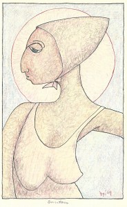 Nighty Elf; Coloured pencil and lead pencil on paper, 1966.