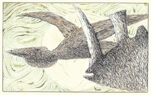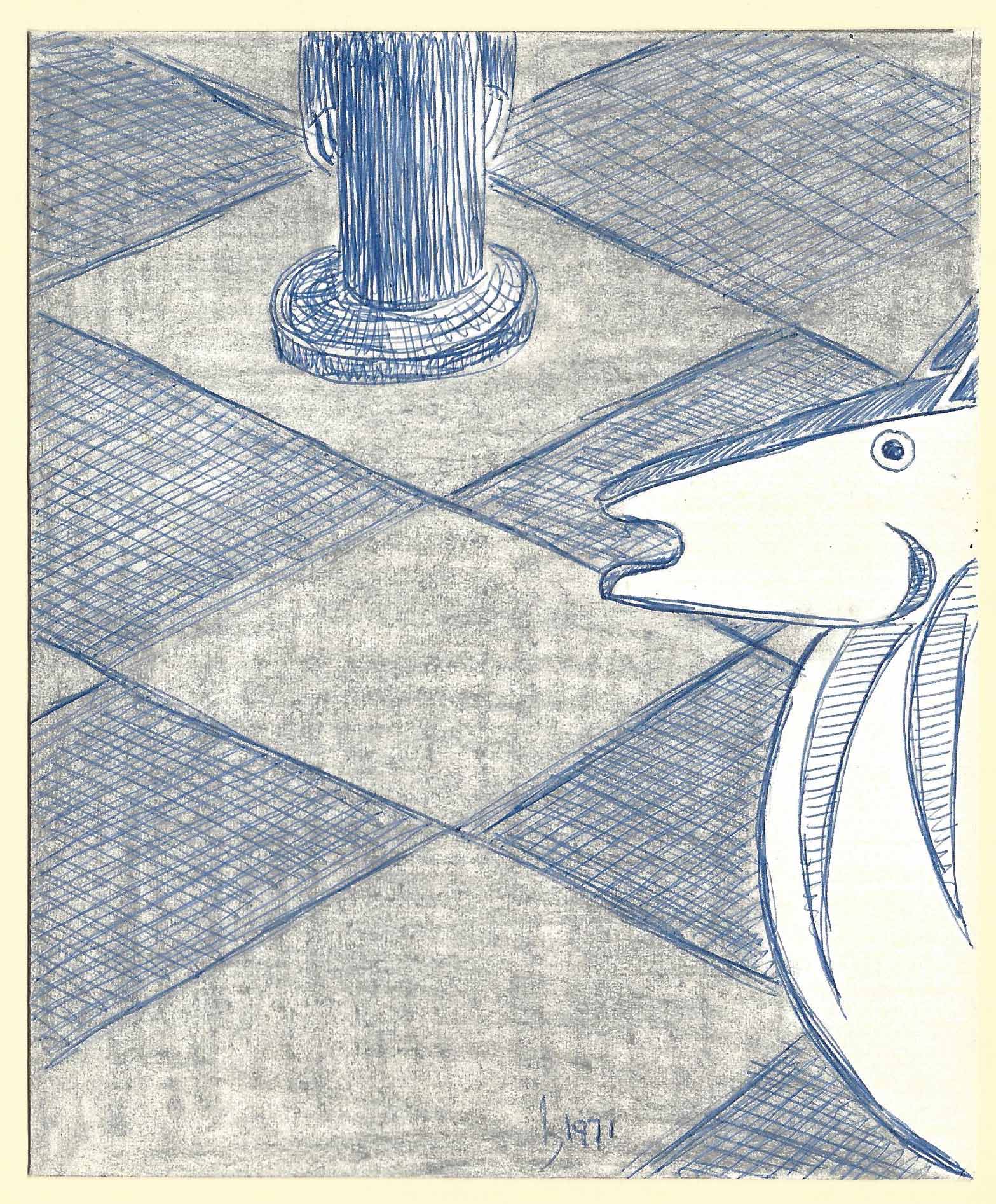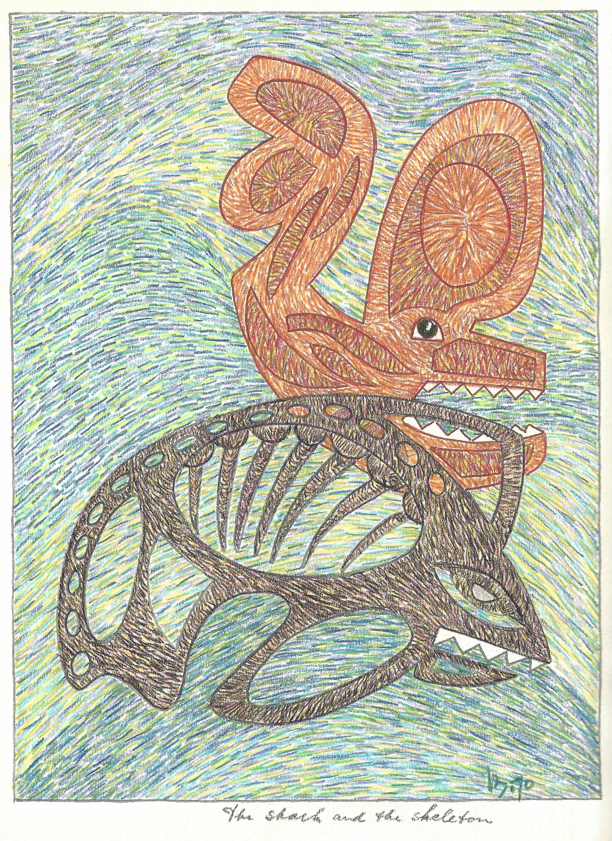 The Shark and the Skeleton; Ink and coloured pencil on board, 1970.