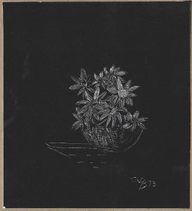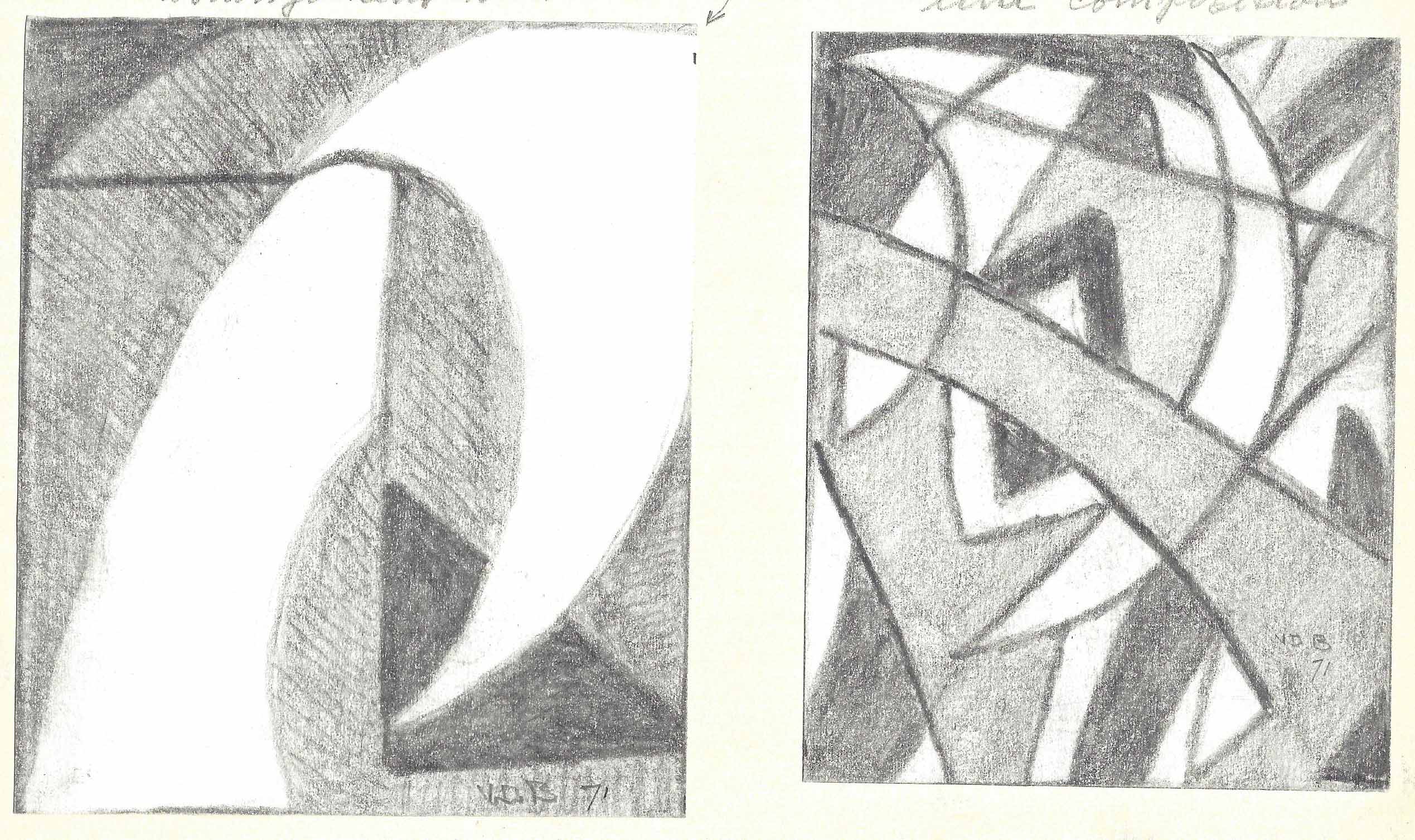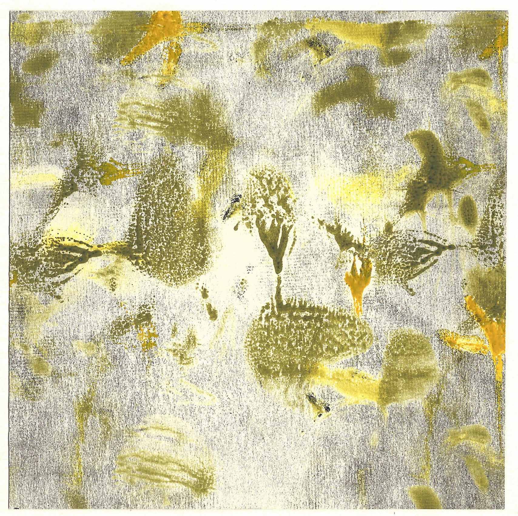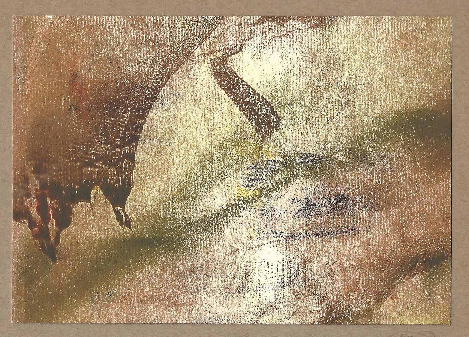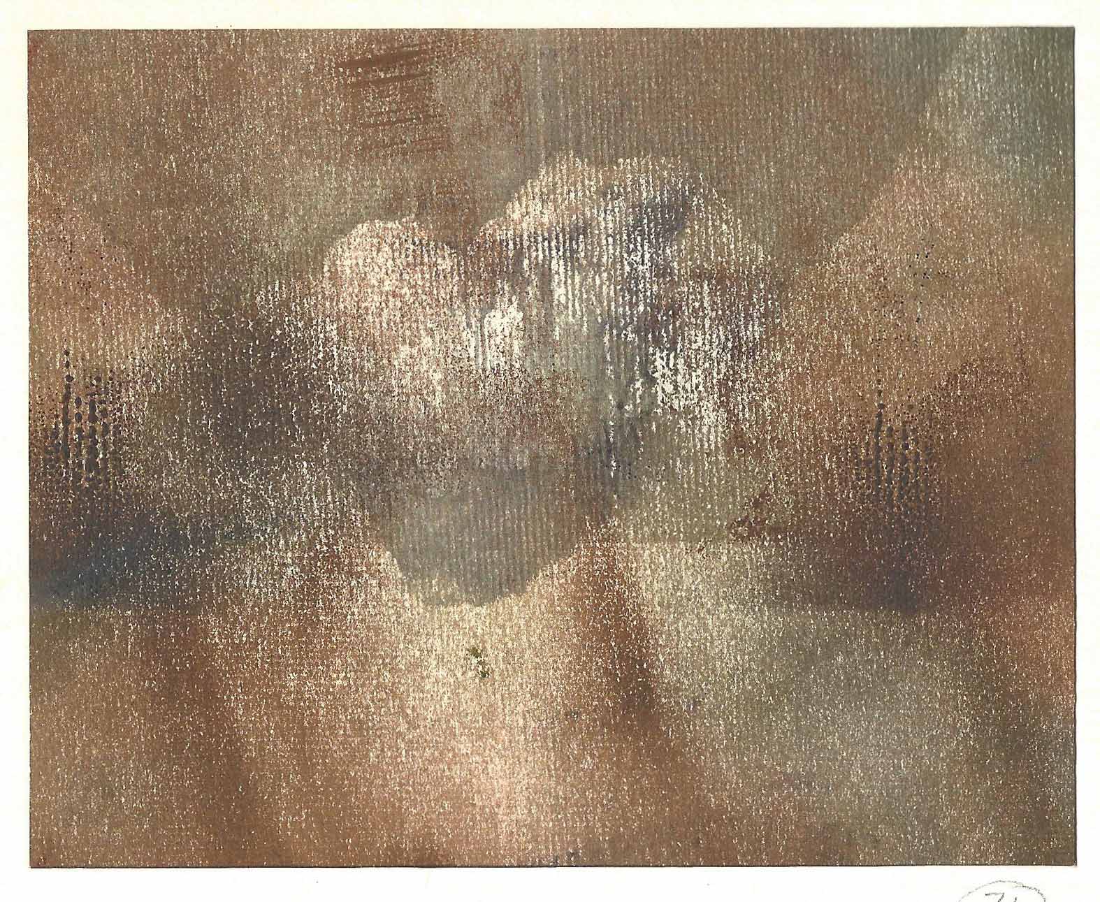 Experimemts with Printing Inks; 1971. Around 1970 Carl took an evening course at VCC (the art department has long since become Emily Carr University of Art and Design). These monoprints were the ones he saved and fancifully titled, Trees in Deep Snow, Night Sky, Lime Pit, Fall Landscape and Ordovician Rock Imprints