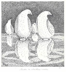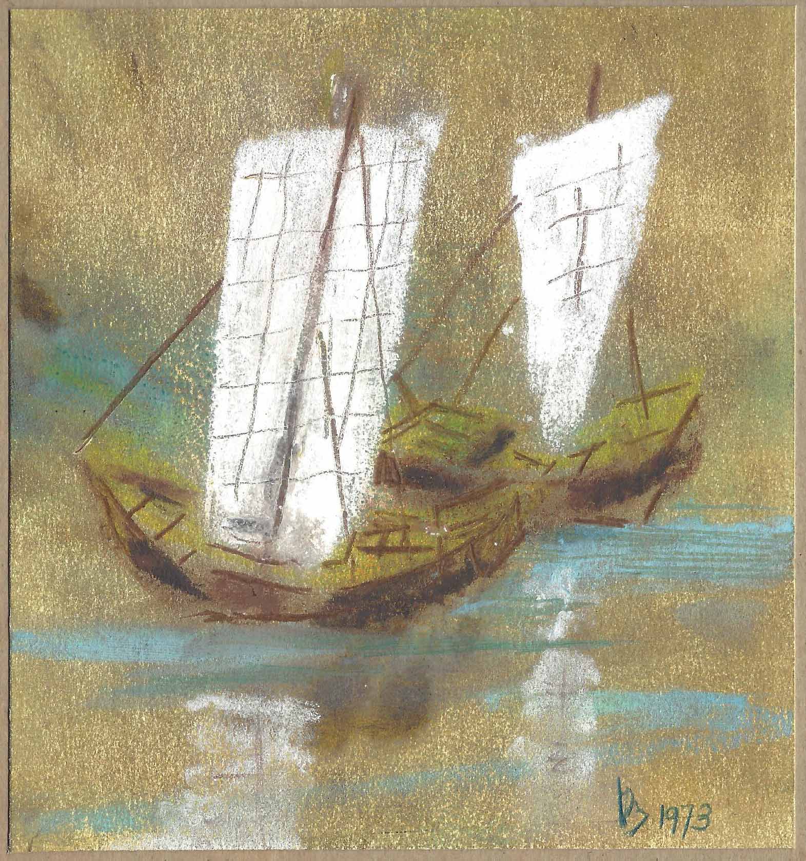 Fishing Boats on Shore; Pen and ink on board, 1972.
