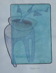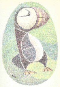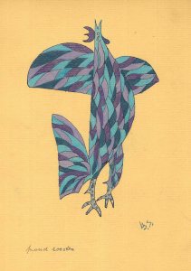 Proud Rooster; Ink and coloured pencil on coloured paper, 1971.