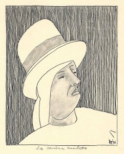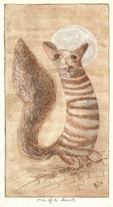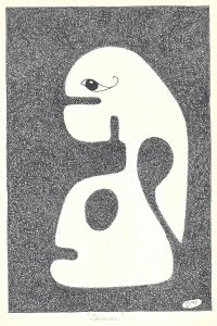Semar; Ballpoint on board, 1971; Indonesian shadow puppet figure of a clown.