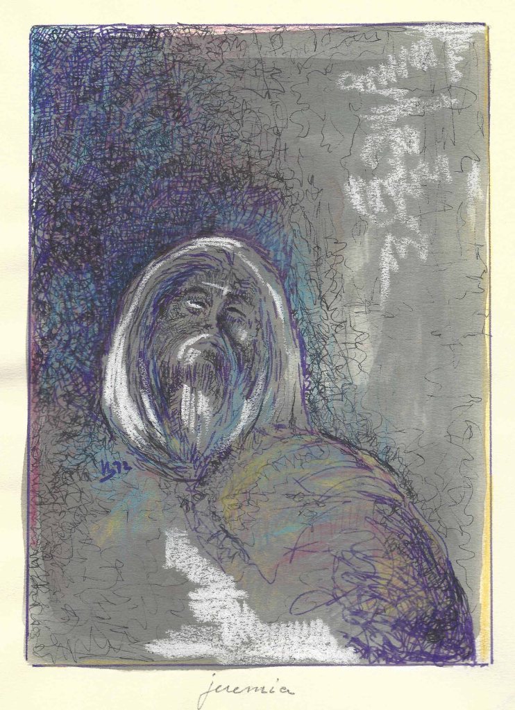 Jeremiah; Felt pen, coloured pencil and Conté crayon on paper, 1972.