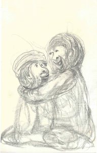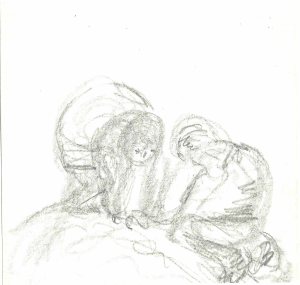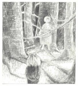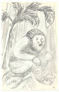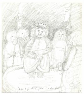 And the Carpenter had built the King a Magnificent Throne; Pencil on paper, probably 1973.