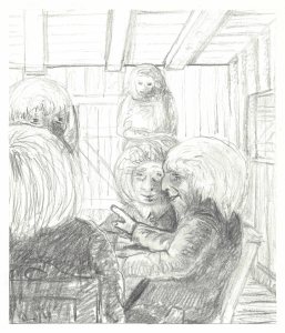 The Fisherman and his Wife; Pen and ink with pencil shading, 1973.