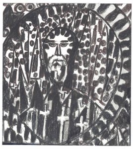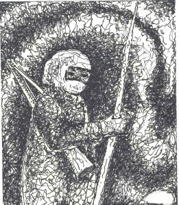 Desert Patriarch; Felt-tip pen and coloured pencil on paper.