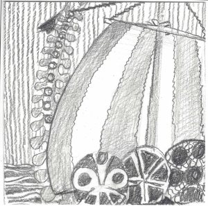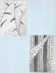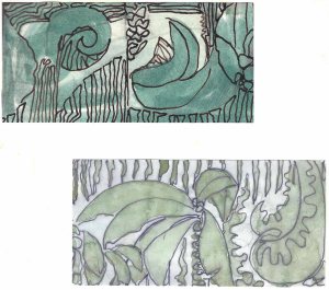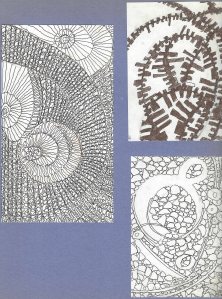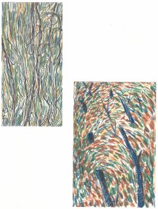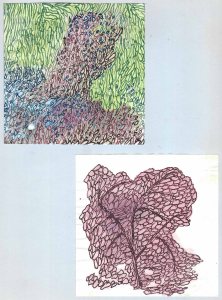 Seaweed and Autumn Swirl, Coloured pencil and ink on paper.