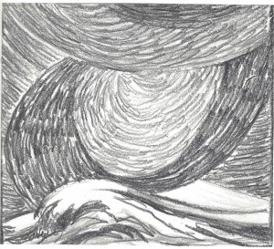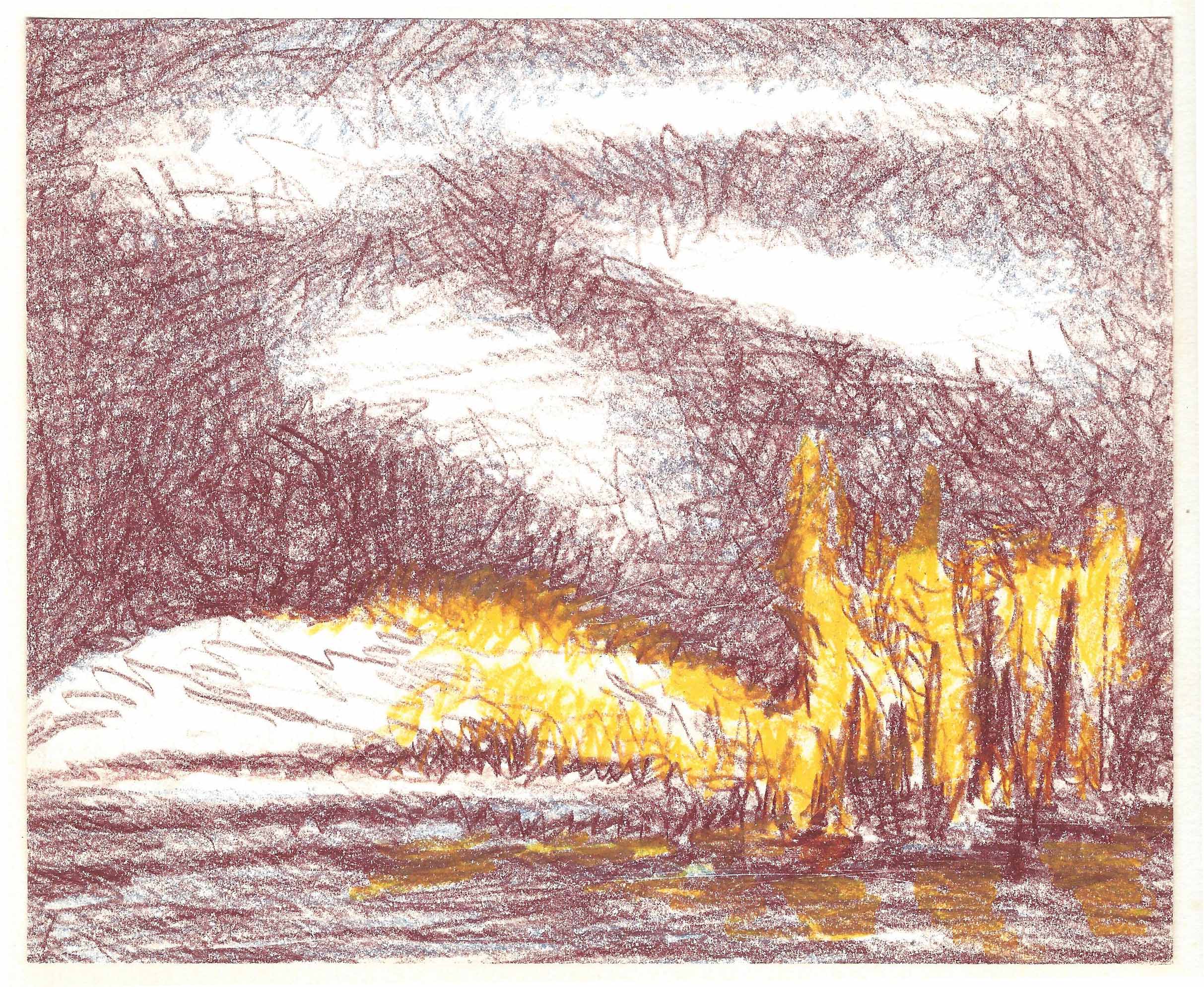 Snow on Mountain and Water’s Edge; Coloured pencil on paper.
