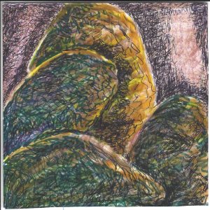 Two Tropical Plant Forms; Felt-tip pen and colour pencil on paper.
