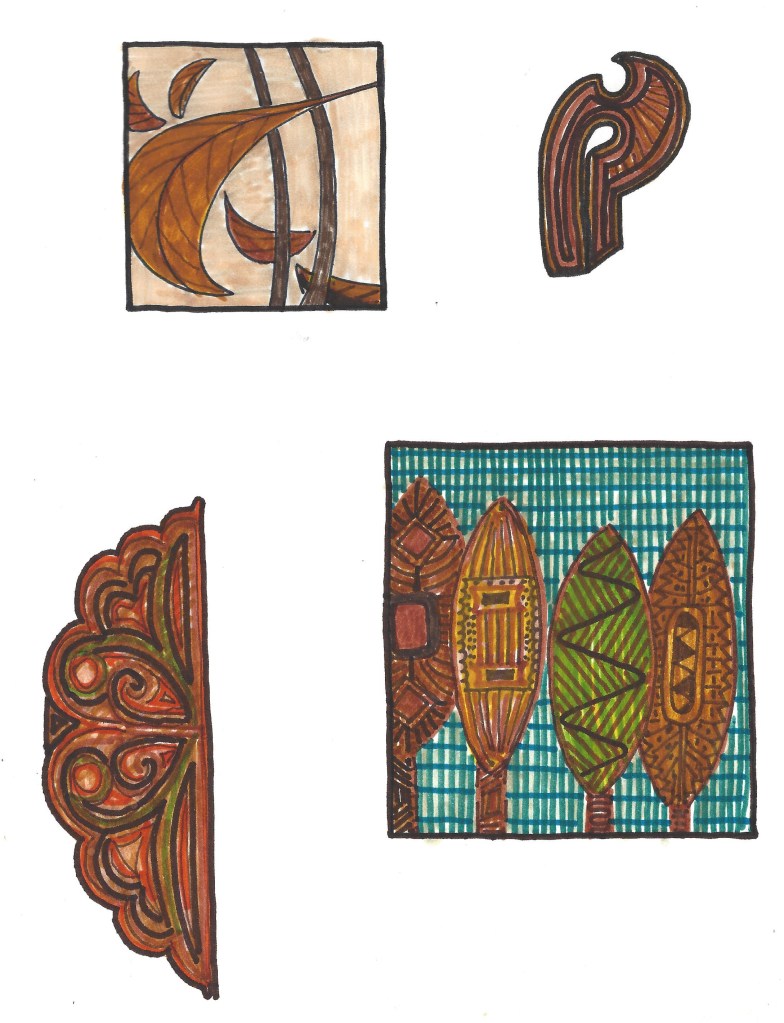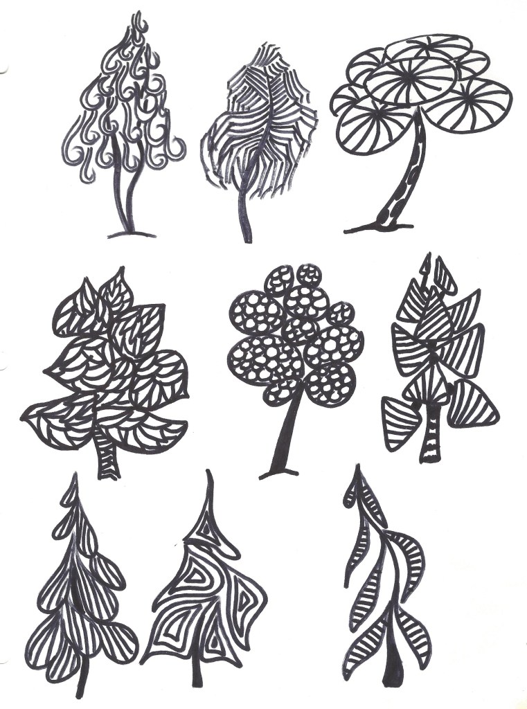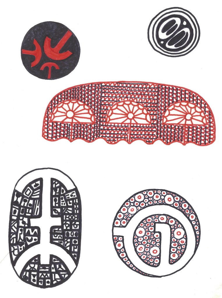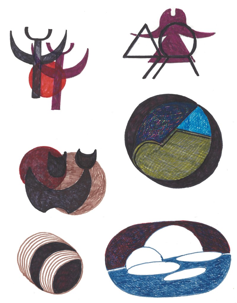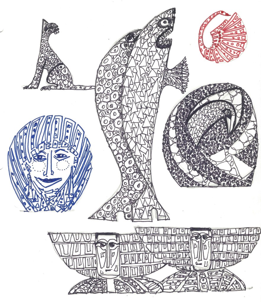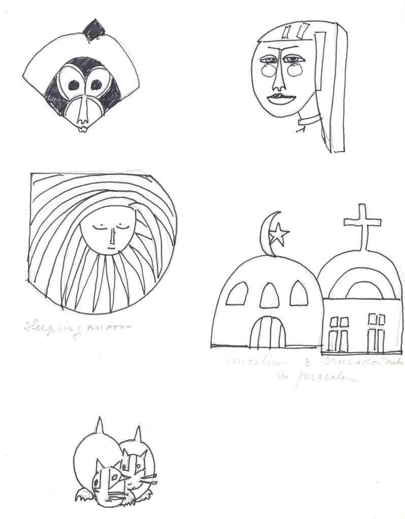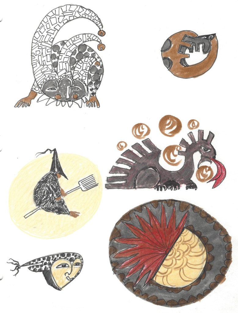 This is a loose-leaf binder. The early pages have been fully worked out on standard 8 ½” x 11” blank paper in what appears to be felt-tip pen with the occasional application of an ink wash. Later pages, not included here, are still in pencil as they were traced or, in some cases, redrawn freehand from the original sketches