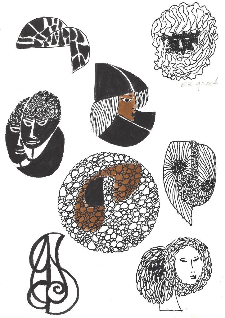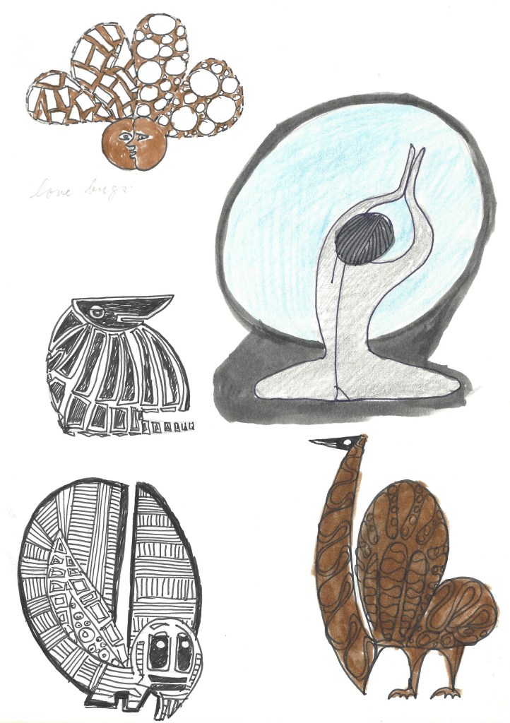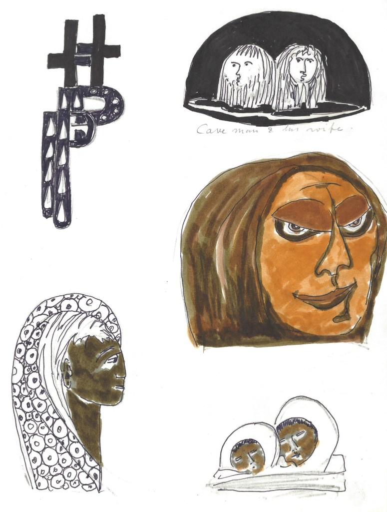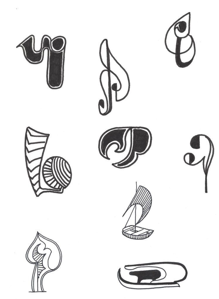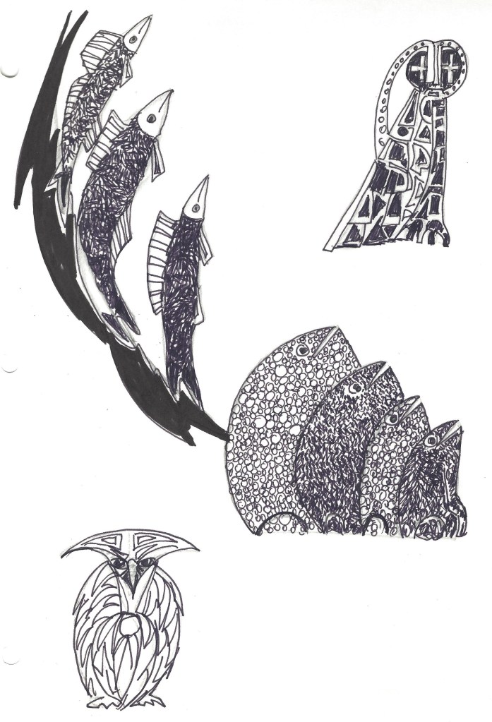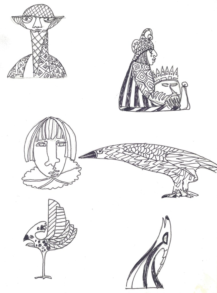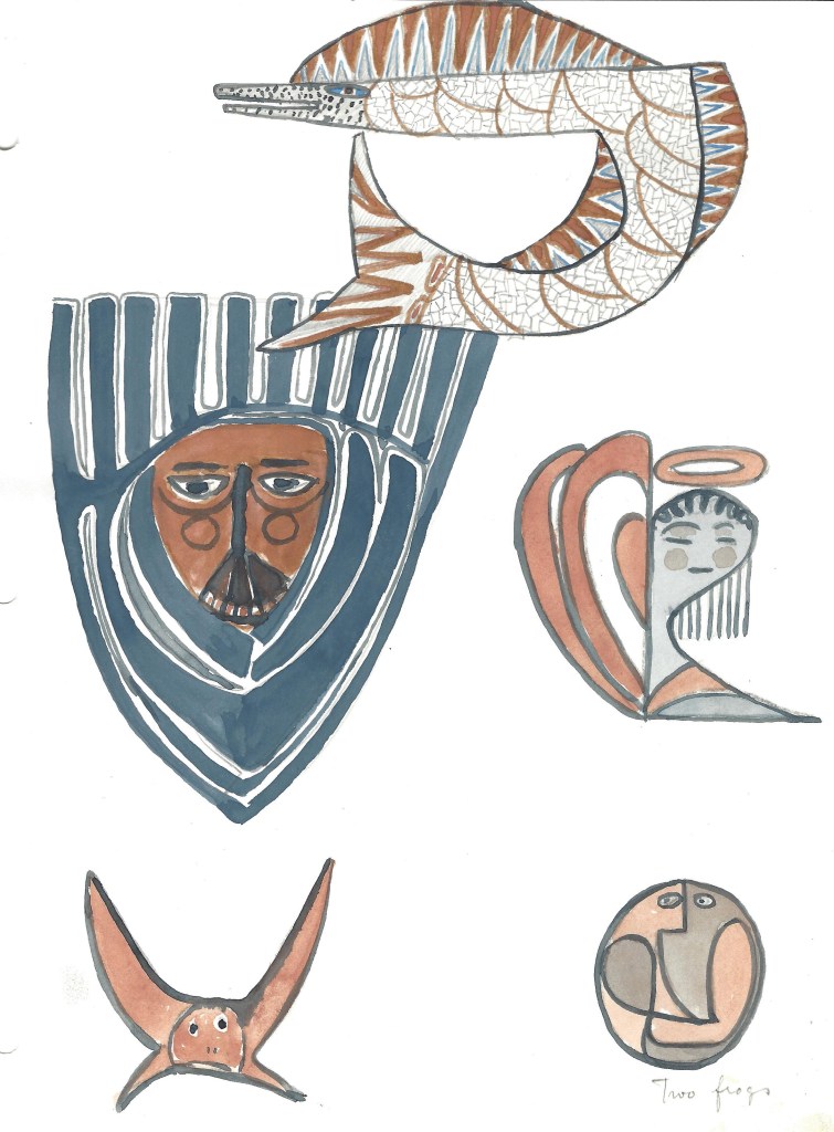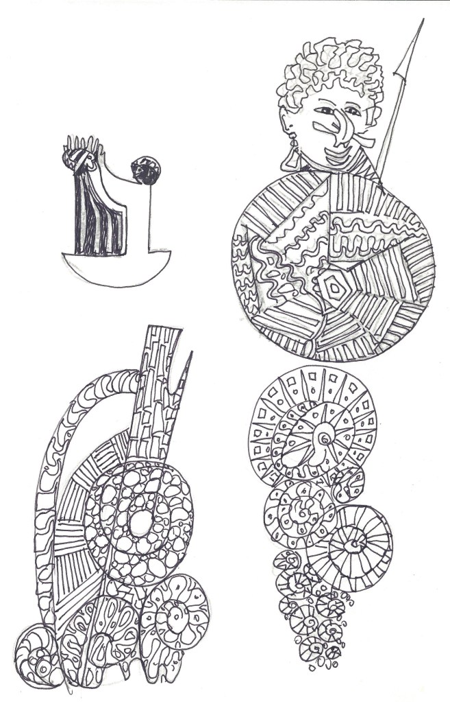 This is a loose-leaf binder. The early pages have been fully worked out on standard 8 ½” x 11” blank paper in what appears to be felt-tip pen with the occasional application of an ink wash. Later pages, not included here, are still in pencil as they were traced or, in some cases, redrawn freehand from the original sketches