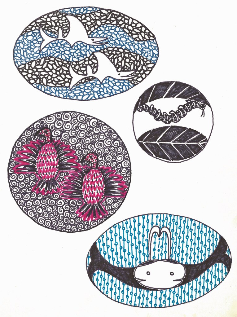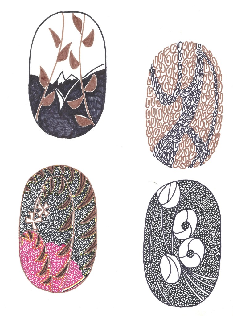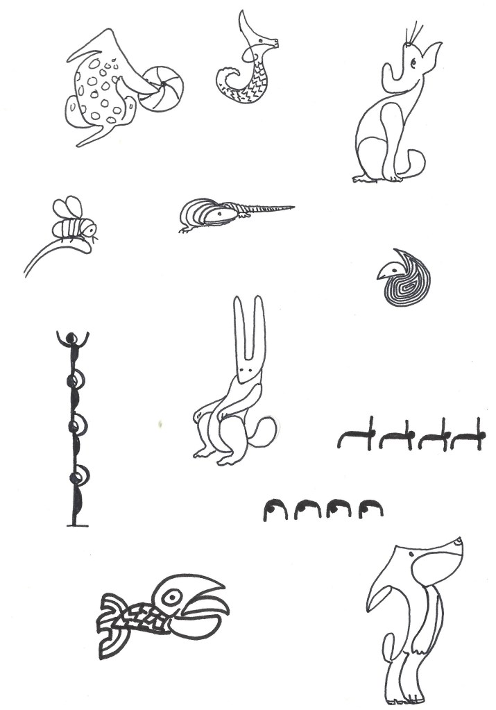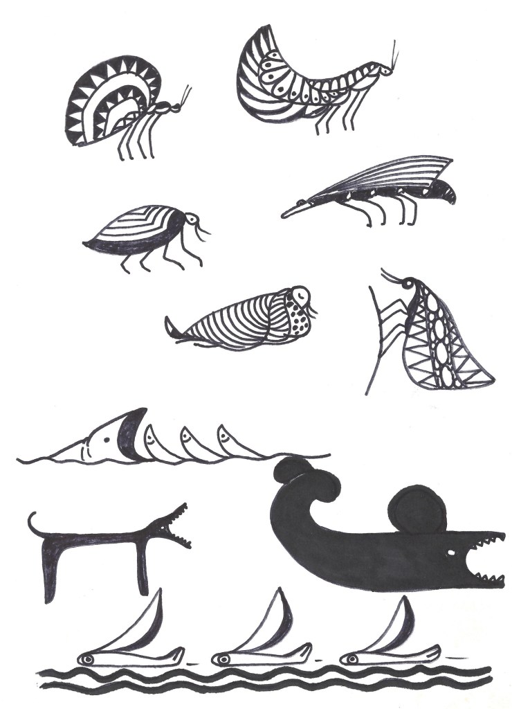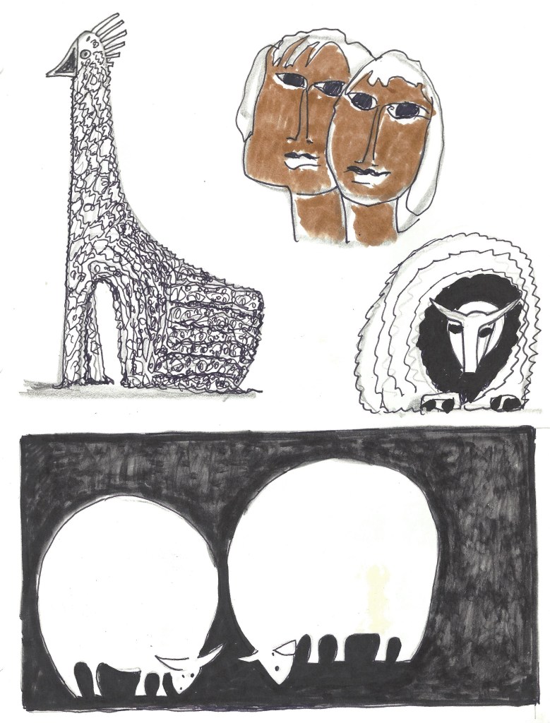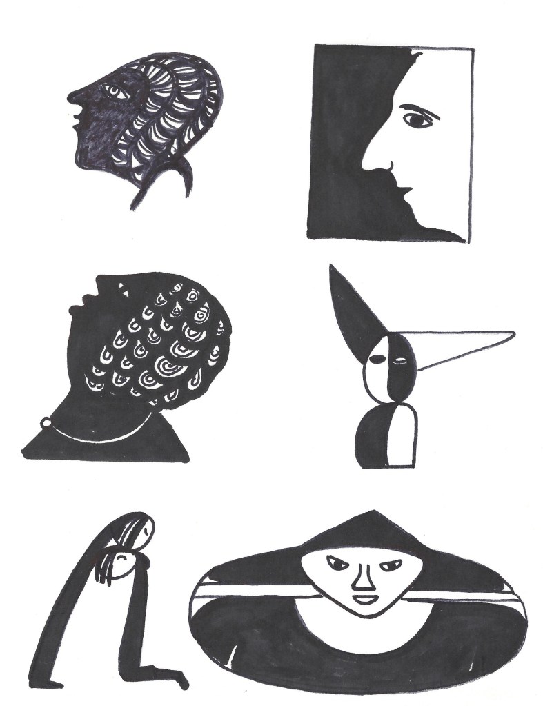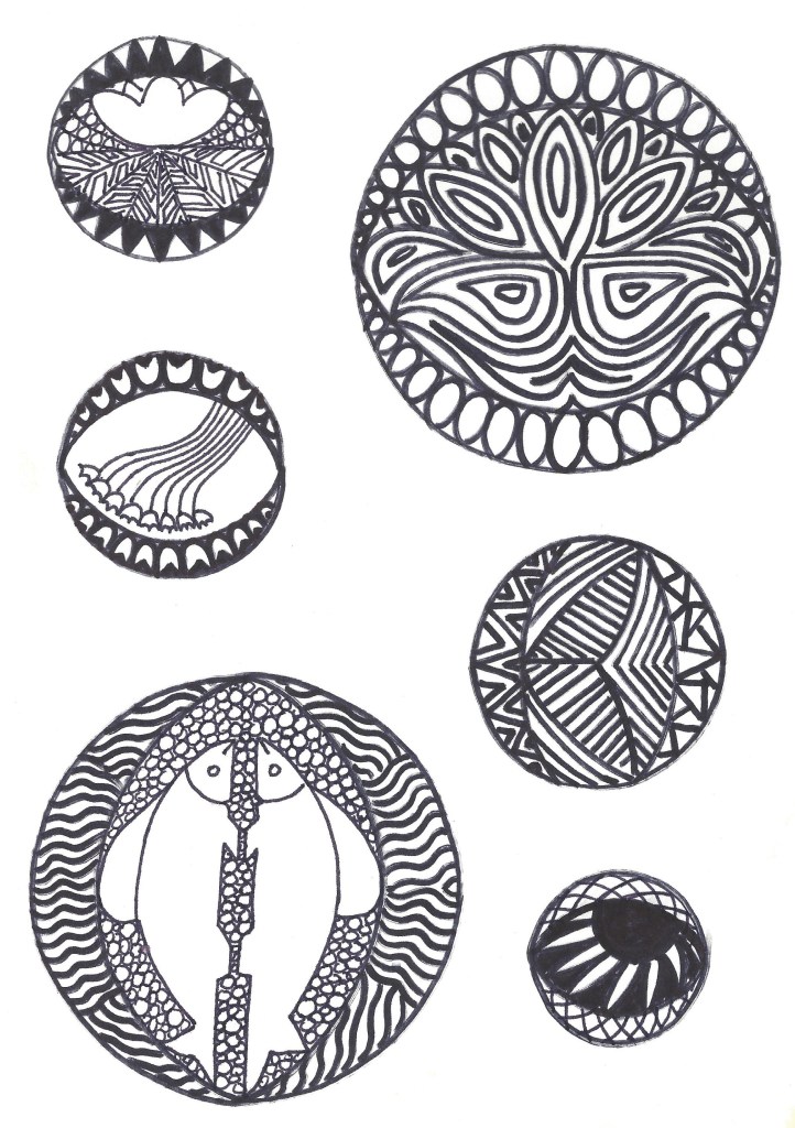 This is a loose-leaf binder. The early pages have been fully worked out on standard 8 ½” x 11” blank paper in what appears to be felt-tip pen with the occasional application of an ink wash. Later pages, not included here, are still in pencil as they were traced or, in some cases, redrawn freehand from the original sketches