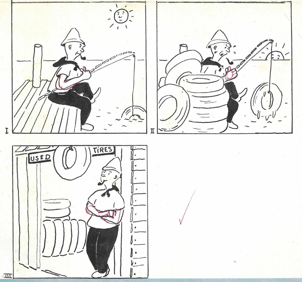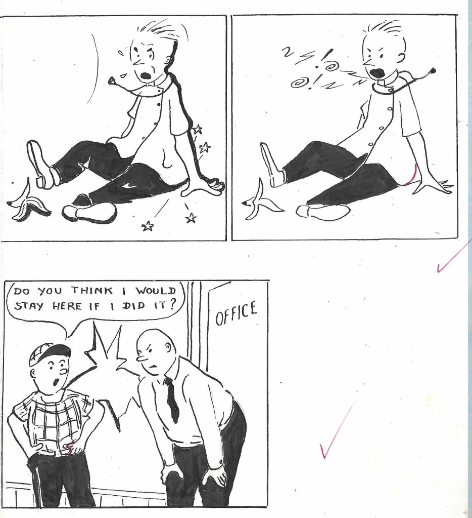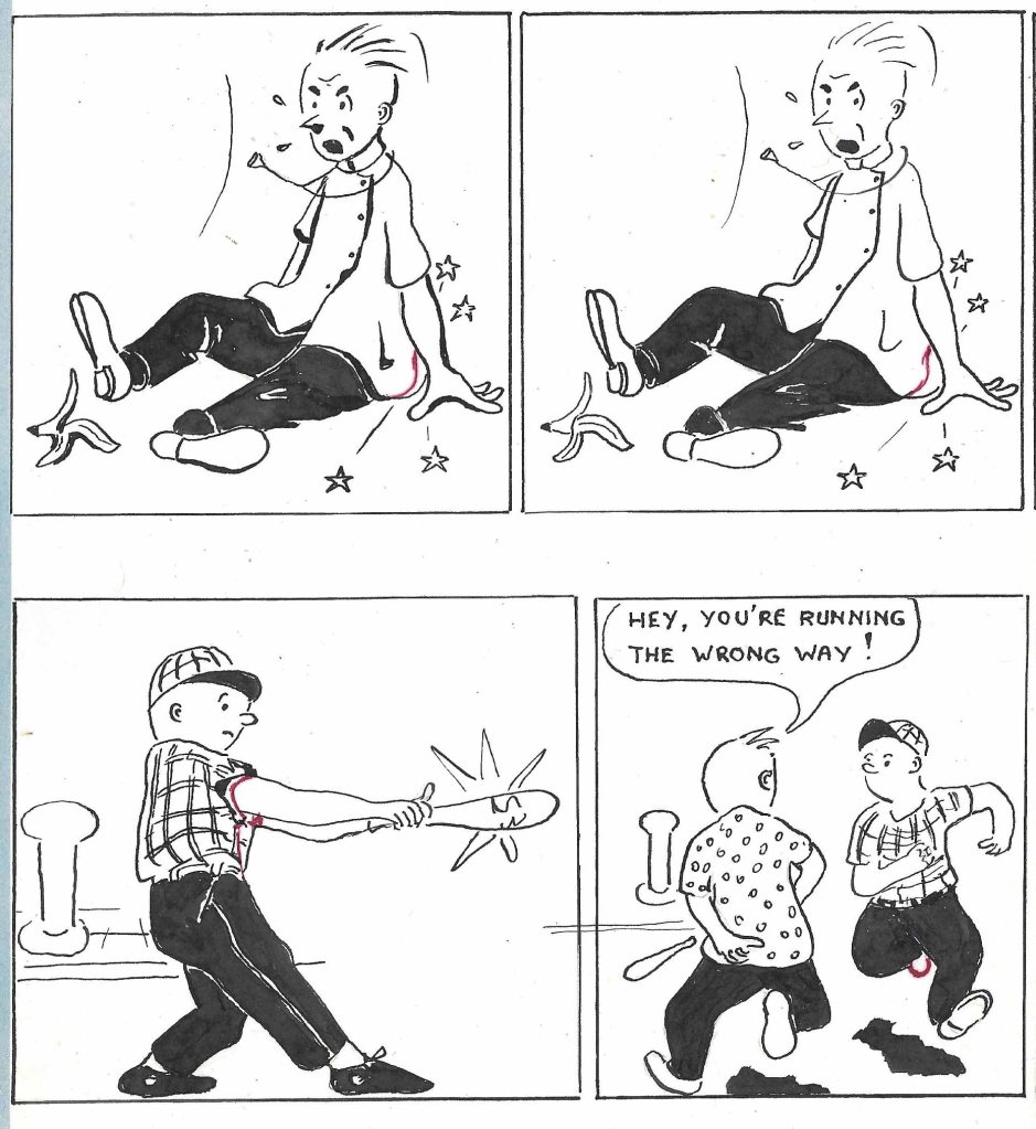 Before he took that commercial art course, he also completed a cartooning course by correspondence. Some of the work he did for that is included here.