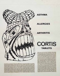 Cortis Tablets; 1966-72 Pen and Ink on Poster Board with Lorem Ipsum rubdown sheets; 25.5 cm x 31.1 cm (approx.)