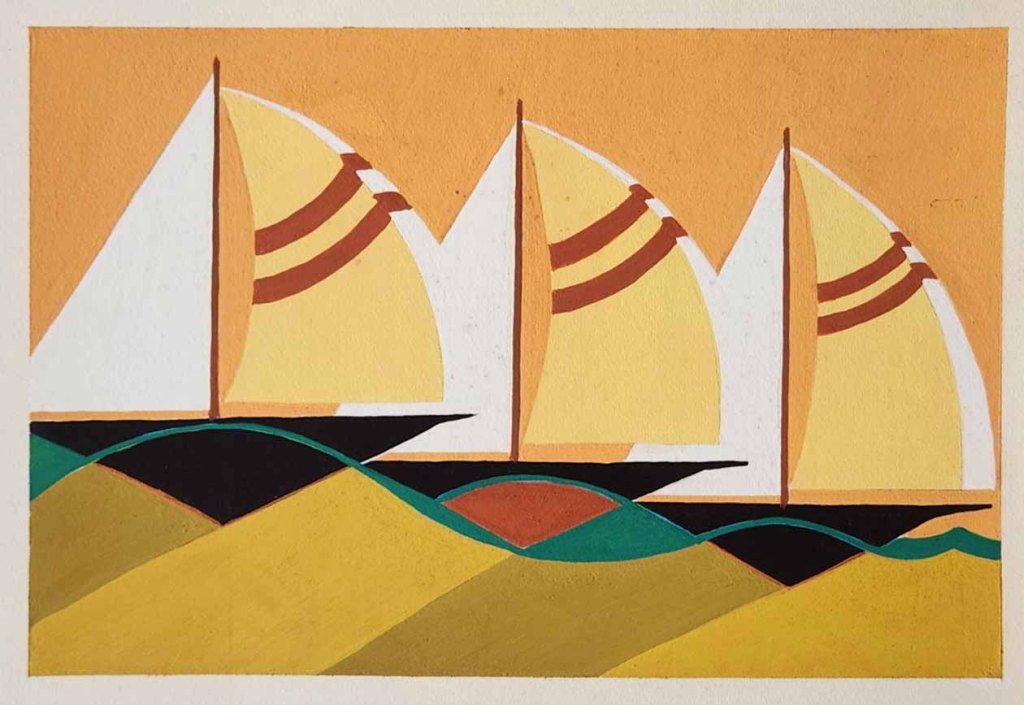 Yachts; 1966-72 Poster Paint on Art Board; 30.4cm x 20.4 cm (approx.)