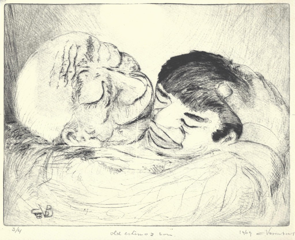 Old Eskimo and Son Old Eskimo and Son1969 Etching or drypoint print 3/4Initialed on plate, signed, titled, and dated. Close window to return to Art Prints.